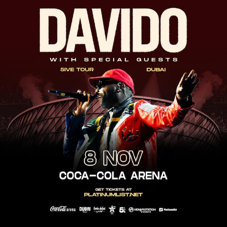 – Grammy-nominated superstar and global Afrobeats icon Davido will light up Dubai’s Coca-Cola Arena once again. This November, fans can expect an electrifying night of Davido’s biggest hits along with tracks from his chart-topping fifth studio album 5IVE including “Awuke,” “Funds,” “With You,” and “Offa Me”. American born and Nigerian raised Davido has reshaped the sound of Afrobeats, blending it with pop and R&B to create worldwide anthems and cement his place as one of music’s most powerful voices. Known for global hits like “Fall”, “If” and “Unavailable”, Davido’s influence extends far beyond the charts as he continues to serve as a cultural ambassador, taking Afrobeats to audiences around the world. From infectious rhythms to global Afrobeats anthems, this is more than a concert. It is a celebration of music, culture, and unstoppable energy, straight from Africa to Dubai. Mark your calendars for a night you will not want to miss Davido and Friends – 5ive Alive Tour in Dubai at Coca-Cola Arena, Dubai, United Arab Emirates events Nightlife Coca-Cola Arena Davido