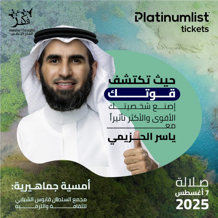 It’s the perfect opportunity to combine soul-enriching insights with the breathtaking nature and cool weather of Salalah. Seats are limited — book your ticket now and don’t miss this transformational experience! Join renowned personal development expert Dr. Yasser Alhuzaimi for an empowering public session in Salalah—just in time for the most beautiful season of the year.