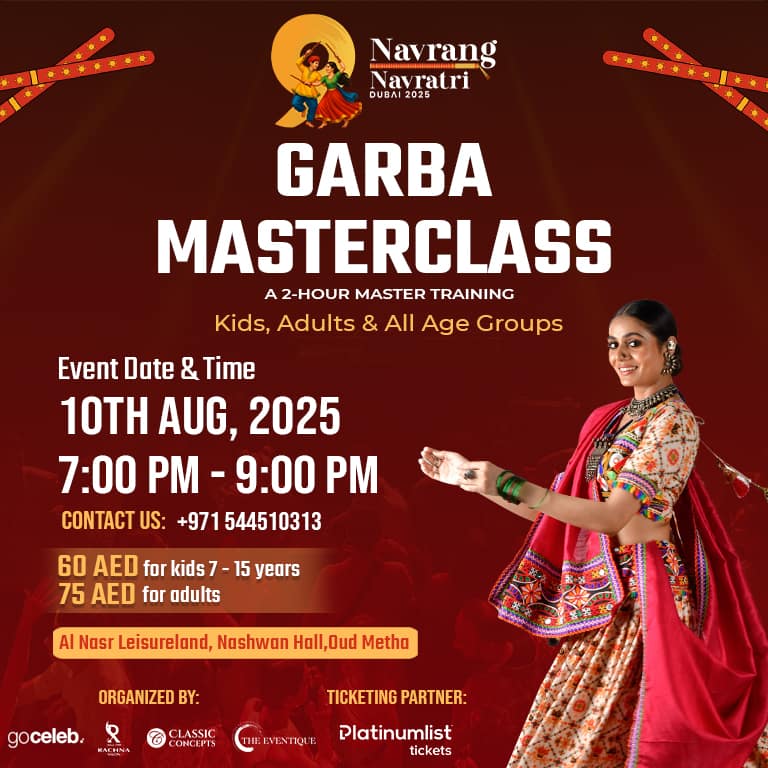 – Step into the spotlight at Dubai’s Biggest Garba Masterclass at Al Nasr Leisureland, where 3 top choreographers bring you the ultimate dance experience and an authentic vibe that feels just like India. Here’s what’s waiting for you:
