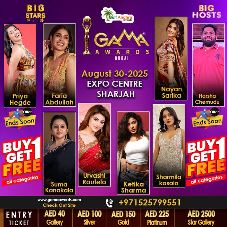 Organized by Gulf Andhra Events, GAMA is the first-ever Tollywood awards ceremony in the Gulf region, setting a prestigious milestone. With a panel of experts and audience votes, the most deserving artists and achievers are honored on this magnificent stage.