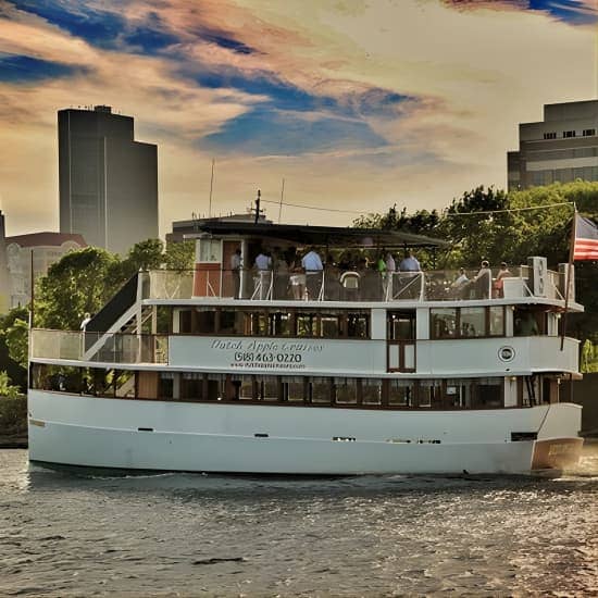 Smartphone tickets ⚡ Instant access to your tickets ⏳ Duration: up to 1 hour 30 minutes Available in English Hop on the ‘Dutch Apple II’ and embark on a thrilling 90-minute journey down the Hudson River! Along the way, soak in captivating tales and quirky facts about Albany’s history while cruising past scenic nature views and historic riverside homes. Keep your eyes peeled for eagles with your binoculars, or simply kick back and enjoy the ride. Remember, boarding kicks off 30 minutes before we set sail. Make sure you’re on time – you won’t want to miss this adventure! Get your tickets for Hudson River Sightseeing Cruise from Albany! Highlights Glide along the Hudson River on the ‘Dutch Apple II’ for a scenic 90-minute journey. Enjoy captivating stories and historical facts narrated by a Hudson River historian. Spot majestic eagles or soak in the tranquil nature views and historic riverside homes. What’s included? ✔️ Enjoy a fully narrated 90-minute sightseeing tour, led by an expert Hudson River historian. Locations USS Slater DE-766 Albany New York State Capitol Erastus Corning II Tower Additional Information Infants and small children are welcome with prams or strollers. Service animals are permitted onboard. Nearby public transportation options make access easy. ️ This experience is suitable for all physical fitness levels. ☔ The experience goes ahead in all weather conditions; dressing appropriately is advised. Bringing binoculars is recommended for spotting eagles. No outside food or beverages allowed, but a full bar and snack bar are available on board, accepting both cash and credit. Why choose Fever? ✔️ Millions of users book every month. ✔️ The best prices and availability at all times. ✔️ Thousands of unique experiences. ✔️ Verified user reviews. ✔️ 24/7 customer service. Experience supplied by Dutch Apple Cruises All ticket sales are final and cannot be refunded, exchanged, or otherwise modified. Click here to check out the T&Cs . Hudson River Sightseeing Cruise from Albany at 141 Broadway, Albany, United States