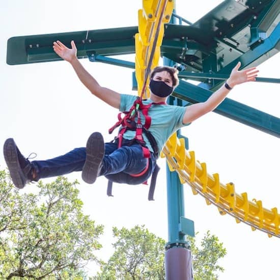 Smartphone tickets ⚡ Instant access to your tickets Gear up for an exhilarating adventure in San Antonio with Twisted Trails! Brace yourself for a heart-pounding experience as you navigate a four-level rope course suspended 60 feet in the air. Leap fearlessly from lily pad to lily pad, conquer the challenging rope ladders, and conquer the twisty obstacles that await you. But the thrills don’t end there! Soar above the treetops on seven mind-blowing zip rails, stretching a total of 685 feet. Get your tickets now! Highlights Fly high among the trees with 7 zip rails that cover 685 feet of track ♀️ Try out your balance and agility on a rope course, 60 feet up in the air What’s included? ✔️ High-altitude fun on the world’s largest Zip Rails and Ropes Course Additional Information ♿ Accessibility: not suitable for wheelchair access Closed, comfortable shoes required (good traction) ⛰️ Participants must fit safely into a harness Minimum height: 48” (or 42” with paid chaperone) Maximum weight: 300lbs Comfortable dress code (no dresses/skirts, shorts covering thighs) Why choose Fever? ✔️ Millions of users book every month. ✔️ The best prices and availability at all times. ✔️ Thousands of unique experiences. ✔️ Verified user reviews. ✔️ 24/7 customer service. All ticket sales are final and cannot be refunded, exchanged, or otherwise modified. Click here to check out the T&Cs . Natural Bridge Caverns: Twisted Trails at Natural Bridge Caverns, San Antonio, United States