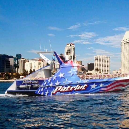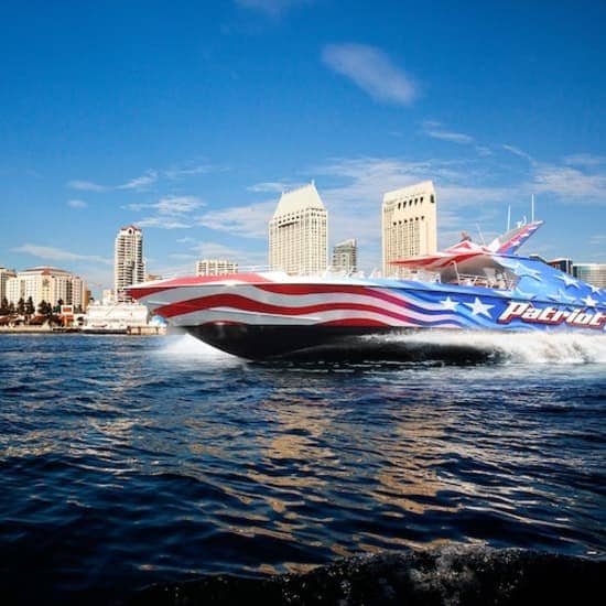 ⭐ Hop on the San Diego: Patriot Jet Boat Thrill Ride for an exhilarating way to see San Diego’s highlights on a high-speed jet boat! Tickets for San Diego: Patriot Jet Boat Thrill Ride Adult (13+) Child (4-12) All tickets include a 30-minute tour on an open-air jet boat Highlights Come aboard and experience a thrilling 30-minute adventure on a high-speed jet boat! Let the wind playfully tousle your hair as the boat spins, twists, and performs exciting manoeuvres at high speeds Indulge in breathtaking sights of San Diego’s downtown skyline, Coronado Bridge, and other stunning views General Info Dates and times: select your date and time directly in the ticket selector ⏳ Duration: 30 minutes Location: 990 North Harbor Drive ❓ For this event, all sales are final and tickets can’t be refunded, changed or modified. For more information, please refer to our T&Cs Description Get ready for the most heart-pounding, mind-blowing experience of your life! Jump aboard the Patriot Jet Boat for a wild 30-minute adventure through San Diego Bay. As you race past the incredible Coronado Bridge and the mesmerizing downtown skyline, get ready to have your breath snatched away! Thrilling high-speed spins, mind-boggling tricks, and gut-wrenching turns await you. It’s time to hold on tight and let the adrenaline course through your veins. Don’t waste a second, get your tickets for the San Diego: Patriot Jet Boat Thrill Ride! Additional info Children must be accompanied by an adult Dress accordingly as getting wet is possible. Ponchos will be provided No lockers available The Patriot ride is not suitable for pregnant women and only guests in good health should ride Animals, including service animals, are not allowed for safety reasons Sights to see include the San Diego skyline, U.S.S. Midway Aircraft Carrier, Maritime Museum ships, North Island Naval Air Station, and Coronado Bridge Food and drink are not included Present smartphone voucher at the ticket booth located at 990 North Harbor Drive Board 15 minutes prior to departure Be responsible for personal belongings as they may get wet or blown away by the wind. Avoid carrying unnecessary valuables Seating is first-come, first-served Cruises will only be canceled in exceptionally bad weather Consider medication in advance if prone to seasickness Call (800)-442-7847 if trouble finding the ticket booth at the harbor. San Diego: Patriot Jet Boat Thrill Ride at 990 North Harbor Drive, San Diego, United States
