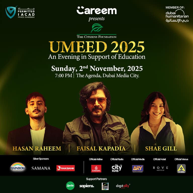 – Get ready for a night of powerhouse performances and heartfelt purpose! TCF Umeed 2025 brings together three of Pakistan’s most celebrated musical talents –Faisal Kapadia, Hasan Raheem, and Shae Gill – for an unforgettable evening in Dubai. From Faisal Kapadia’s legendary voice that has defined generations, to Hasan Raheem’s fresh, genre-bending sound, and Shae Gill’s soulful, globally acclaimed vocals, this is a once-in-a-year opportunity to witness their magic live on one stage. Expect chart-topping hits, electrifying energy, and moments that will stay with you long after the final note. But this night is about more than music – it’s about changing lives. TCF Umeed 2025 is a special fundraising concert in support of The Citizens Foundation (TCF), a non-profit organization registered with Dubai Humanitarian. All proceeds from the event will go towards providing quality education to less-privileged children in TCF schools across Pakistan. It will be a true celebration of hope, where every performance and every ticket purchased helps open the door to a brighter future. Experience an evening where music meets meaning – and hope takes center stage. TCF Umeed 2025 at The Agenda in Dubai at The Agenda Venues FZC LLC, Al Jaddi St, Dubai, United Arab Emirates events Concerts The Agenda Faisal Kapadia